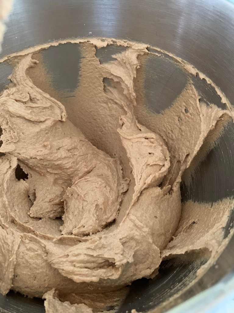 Add in the flour in 3 parts, folding in with a spatula or mixing lightly with the mixer.